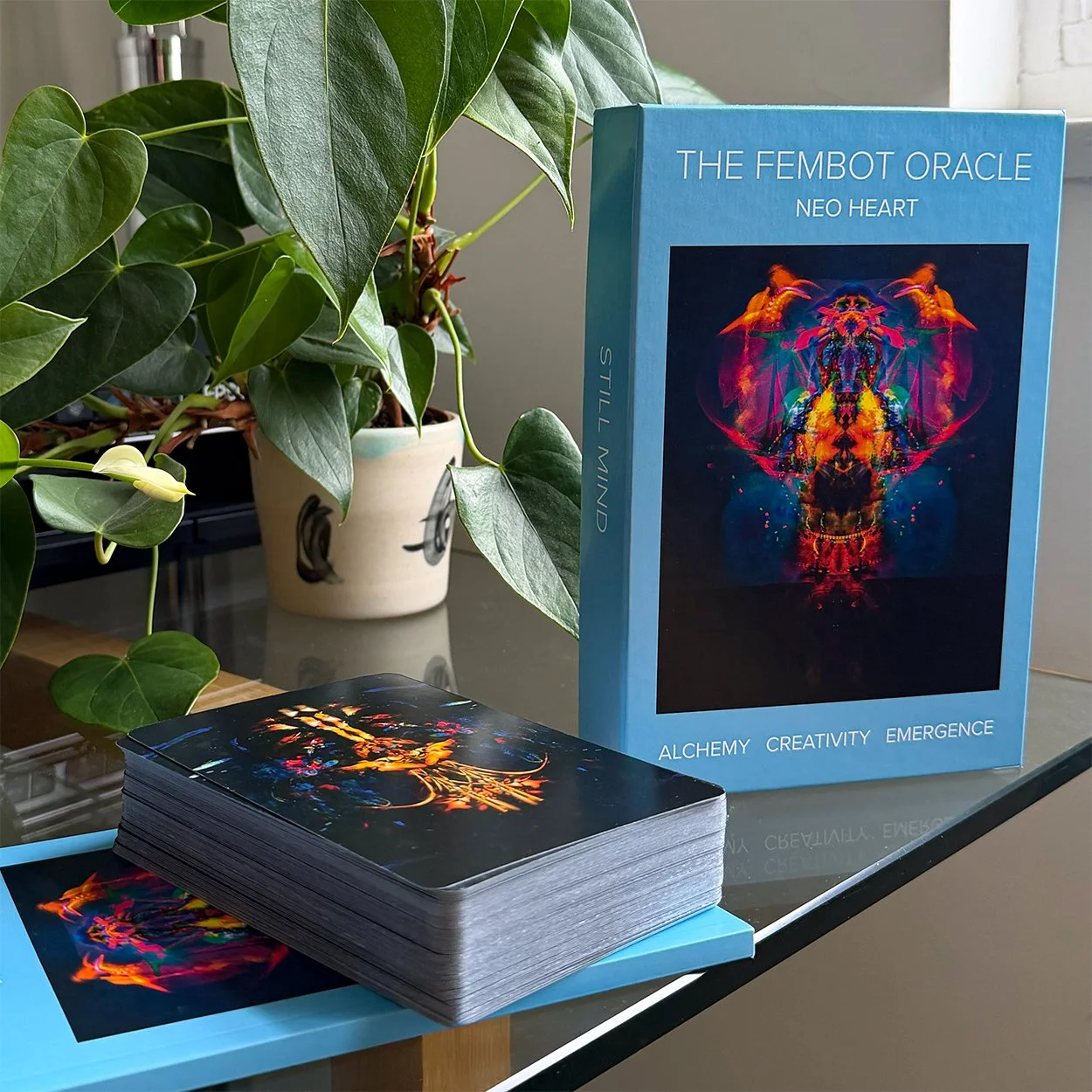 The Fembot Oracle is a 78-piece art-alchemy deck, book and boxset that can support you to cultivate a still mind, free body and wild heart.