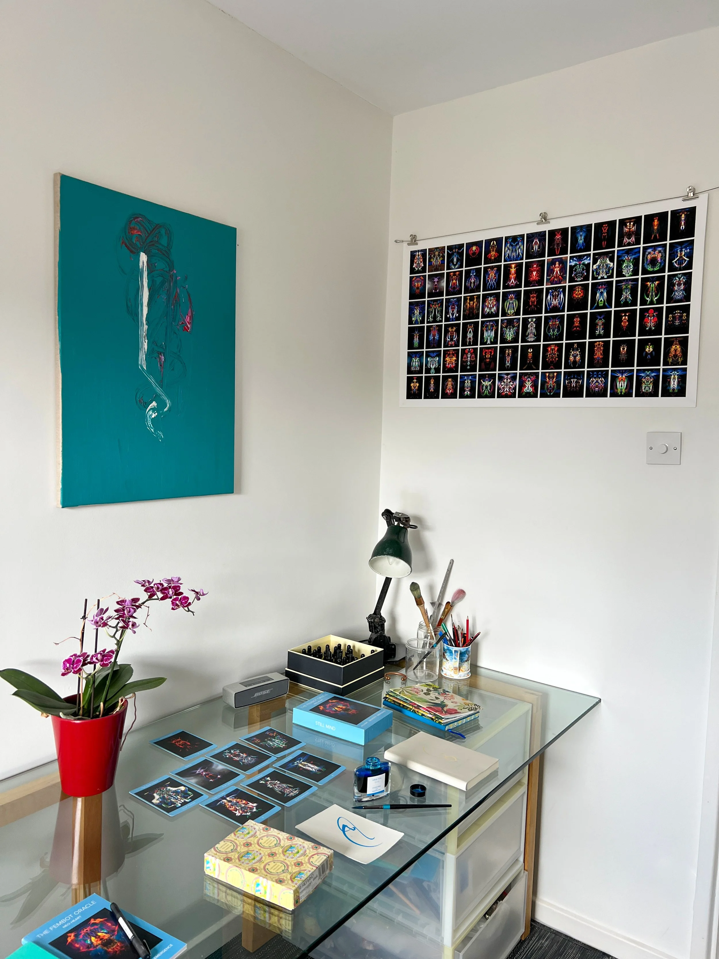 The Mirror Portal is an 89 x 50cm/35 x 20” Giclee print on Hannemule paper bringing out the deep blacks and rich colours of each image. It is created and directly shipped to you by the award-winning German printers Whitewall. The signed accompanying Art Alchemy Japanese Ink painting is shipped personally from me. Once this special first edition of 33 has sold the print will be available as a universal edition, at a higher price, without an accompanying numbered and signed bespoke painting.